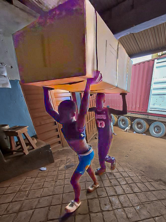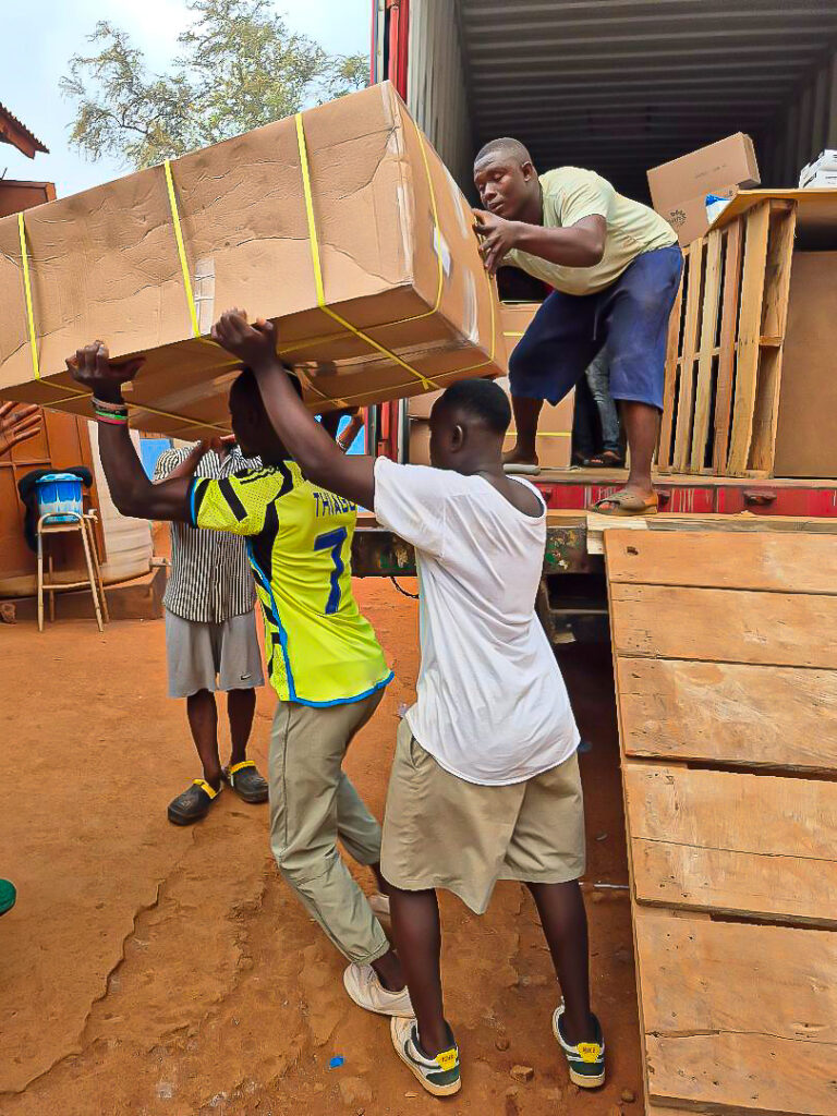 On February 7, two shipments—a 40-foot container and a 20-foot container—arrived together at our base in Freetown. Sent from Assumption Church in Morristown, NJ in November and December, both containers were successfully cleared through customs and delivered without issue.